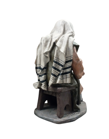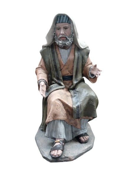 Anciano sentado en taburete de 24 cm, en pasta cerámica pintado a mano