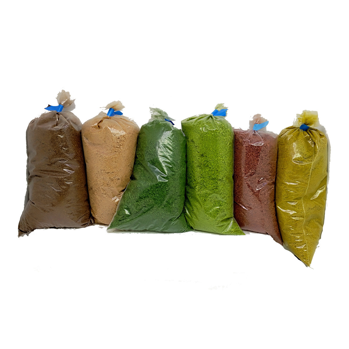 Bolsa serrín fino seis colores, de 140 gr.Marrón oscuro y claro, verde oscuro y claro, ocre y amarillo. Para el Belén.